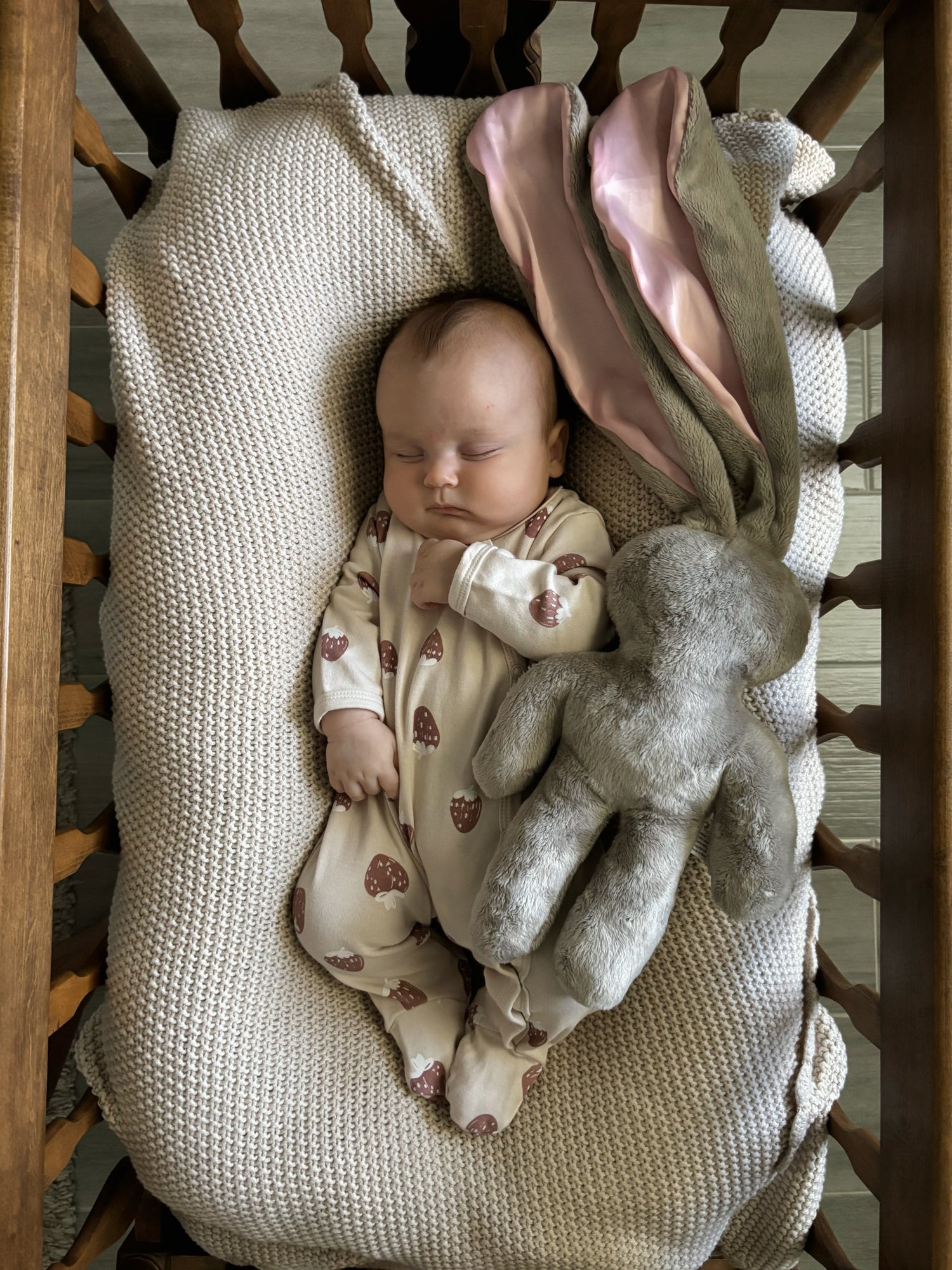Every detail of Hoppy is intentional. With sensory-friendly ears, a faceless design for open-ended play, and fabrics chosen for durability, Hoppy is more than a toy — it’s a baby lovey designed to support imagination, early development, and peace of mind for parents.